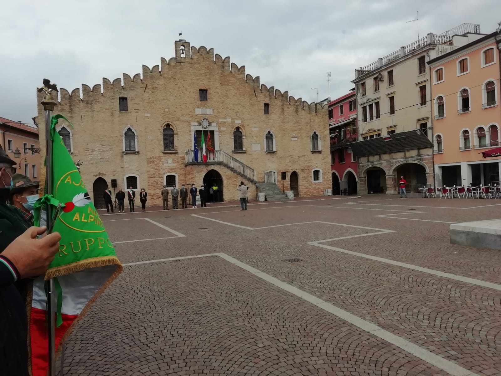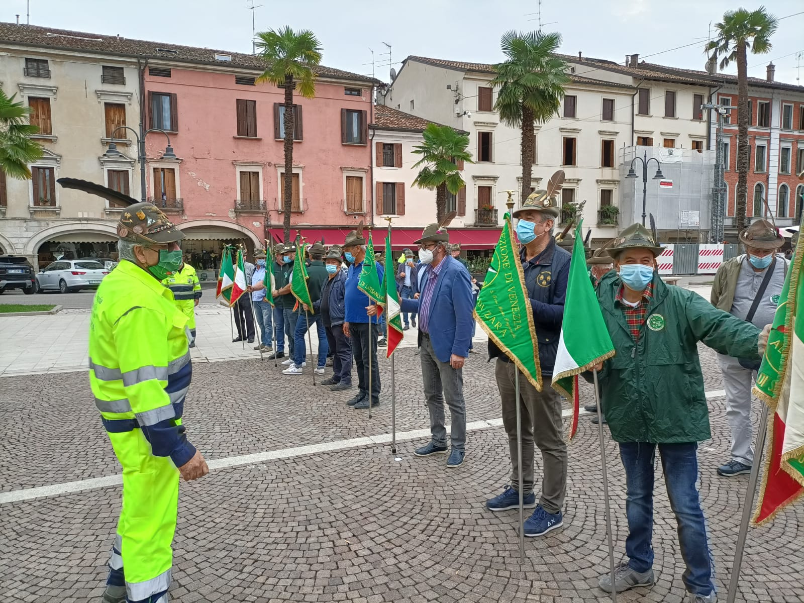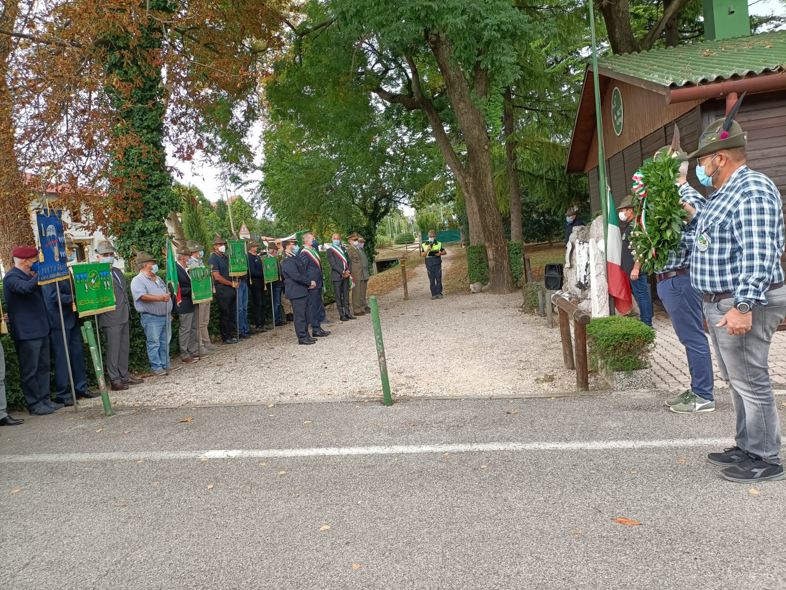 Le restrizioni dovute alla Pandemia hanno infatti ”ridisegnato” lo svolgimento della manifestazione, il distanziamento è stato fatto rispettare dai volontari della nostra Protezione Civile Sezionale, in Piazza della Repubblica ci si è limitati alla deposizione di una corona al Monumento ai Caduti e di tre serti floreali ai tre Martiri della Resistenza.