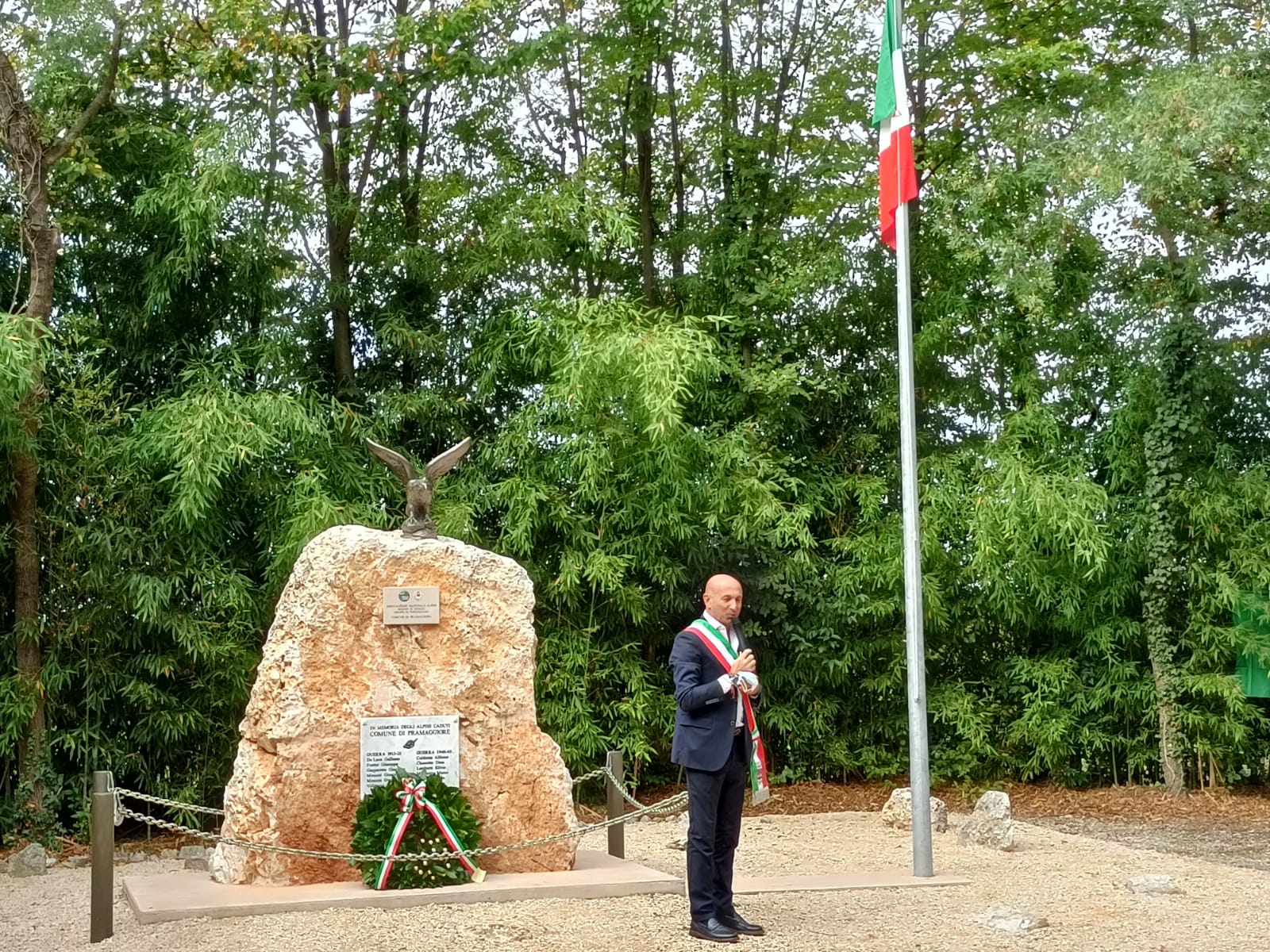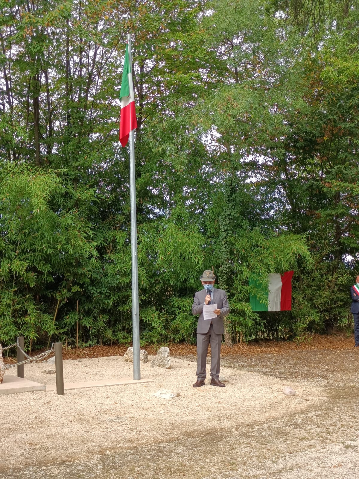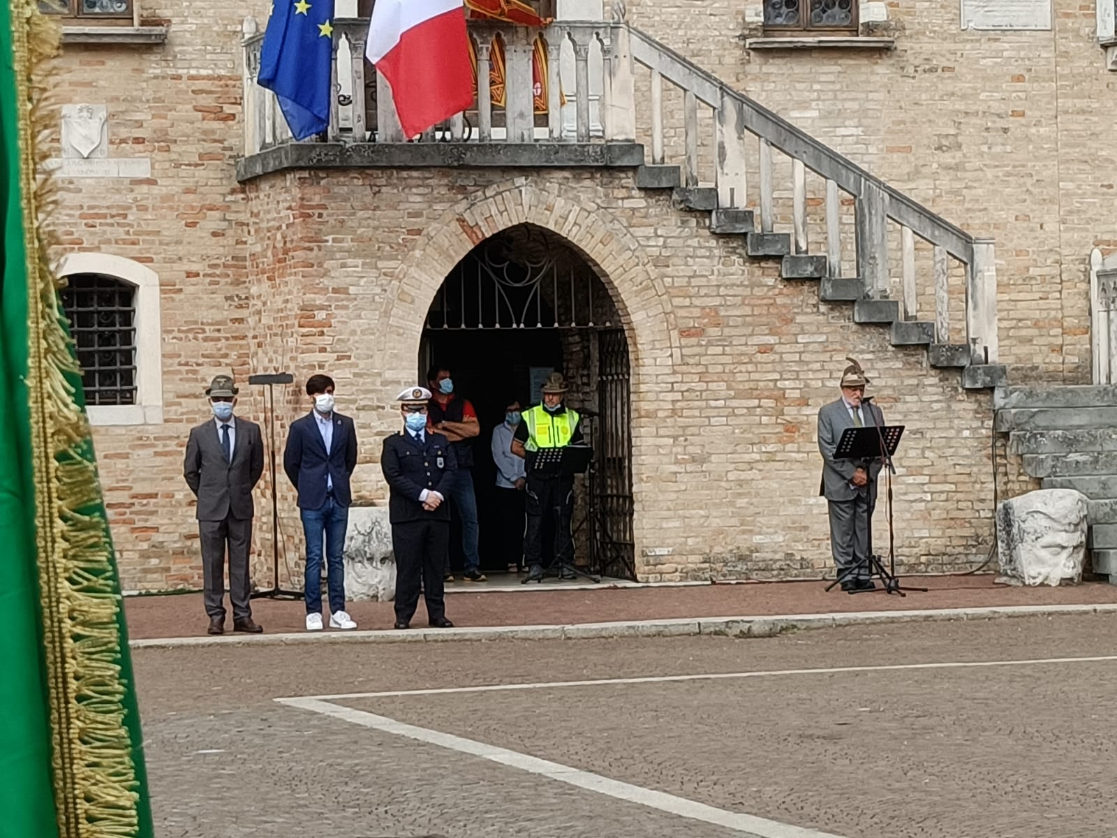 Le restrizioni dovute alla Pandemia hanno infatti ”ridisegnato” lo svolgimento della manifestazione, il distanziamento è stato fatto rispettare dai volontari della nostra Protezione Civile Sezionale, in Piazza della Repubblica ci si è limitati alla deposizione di una corona al Monumento ai Caduti e di tre serti floreali ai tre Martiri della Resistenza.